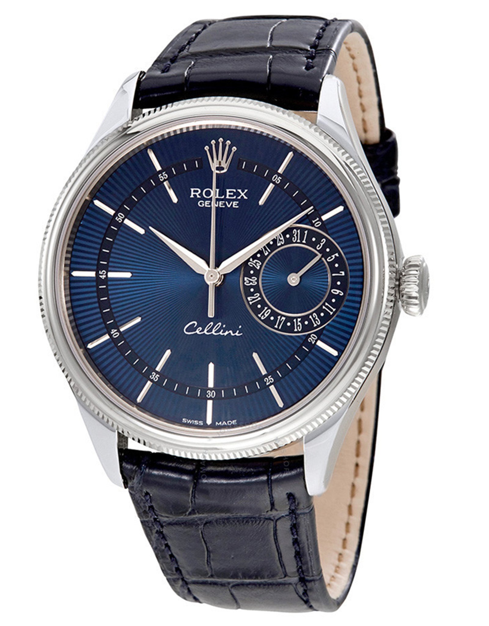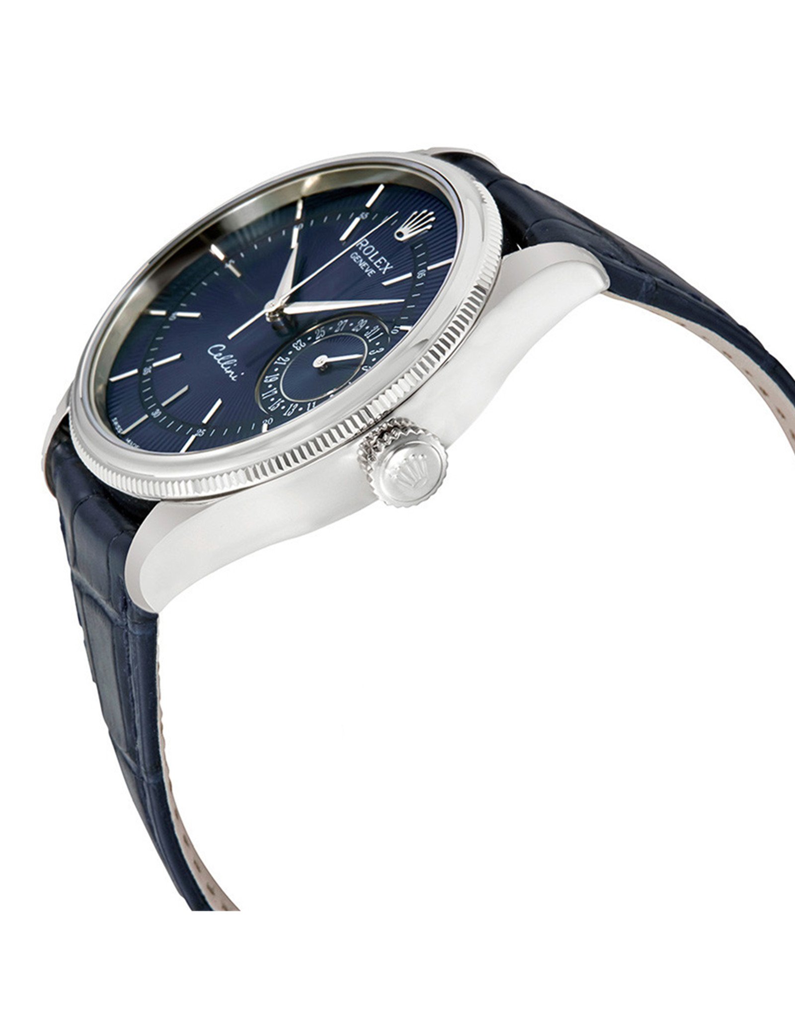 Rolex Cellini Blue Guilloche Dial Automatic Men’s Leather Watch 39MM