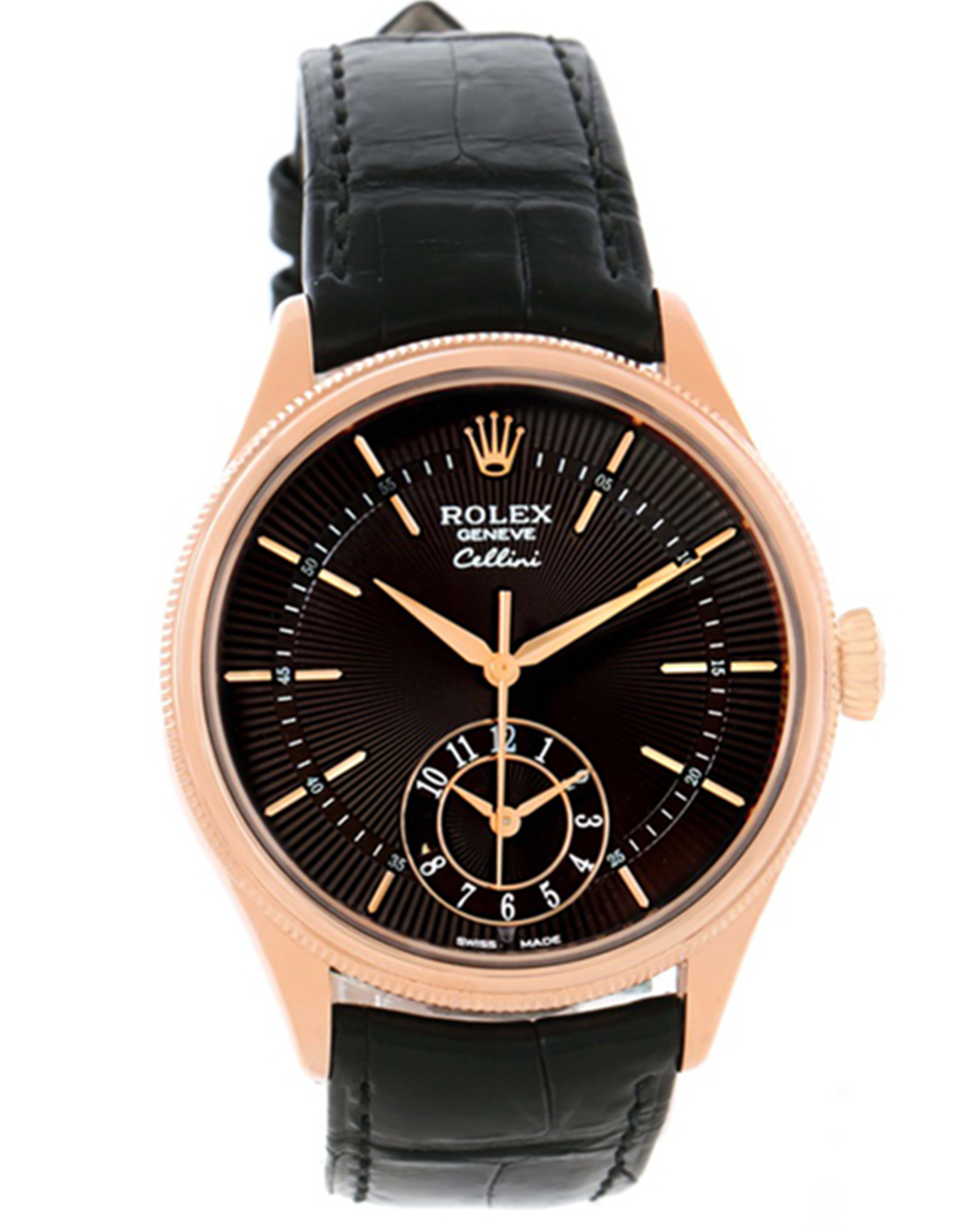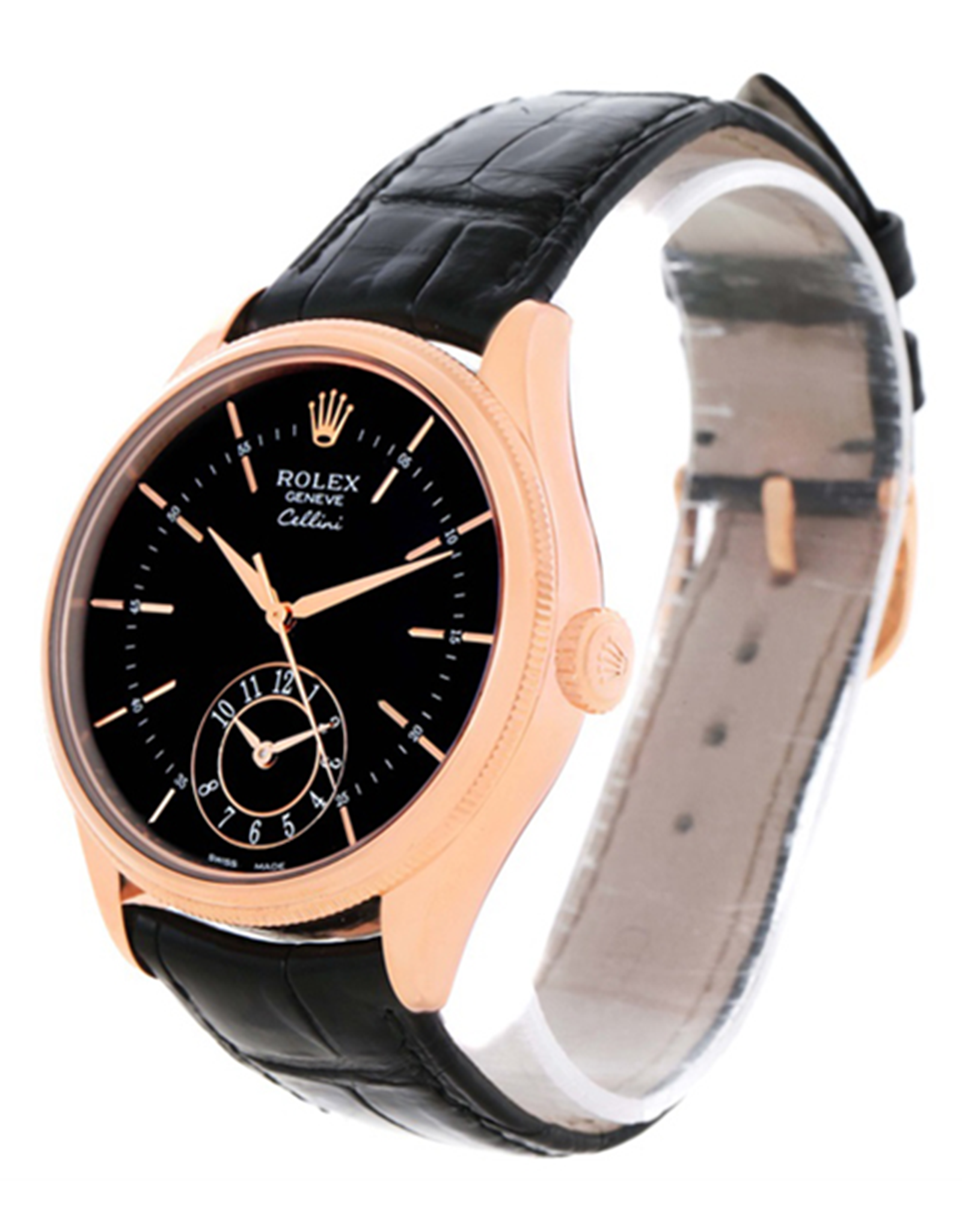 Rolex Cellini Dual Time Everose Gold Black Dial 50525 39mm