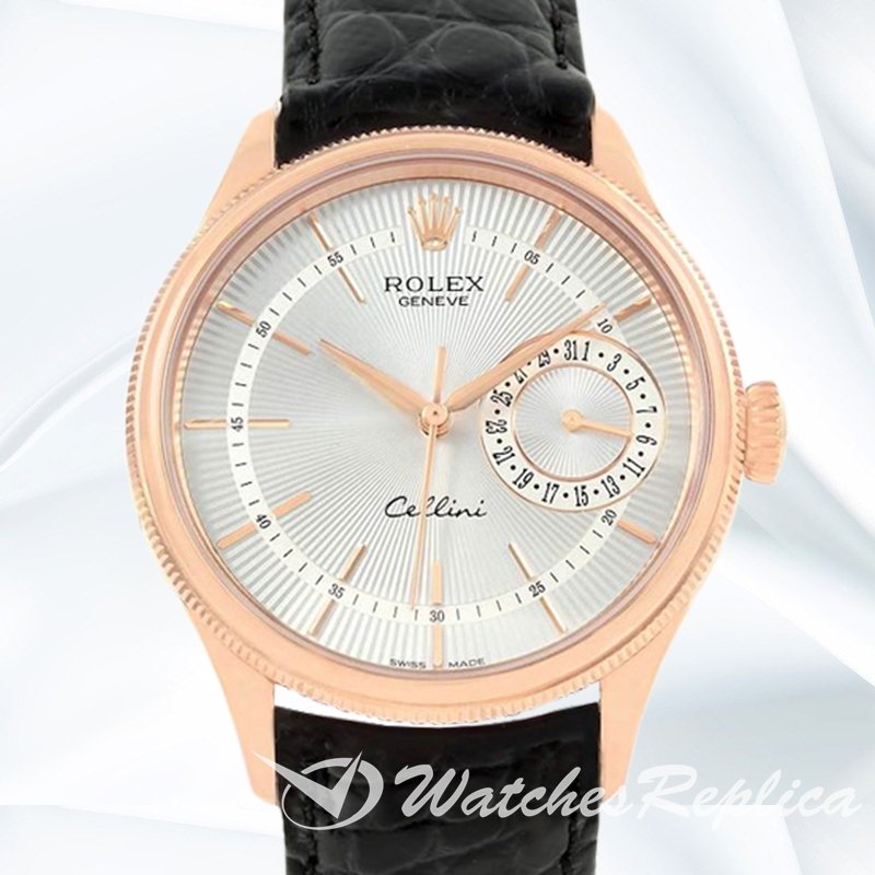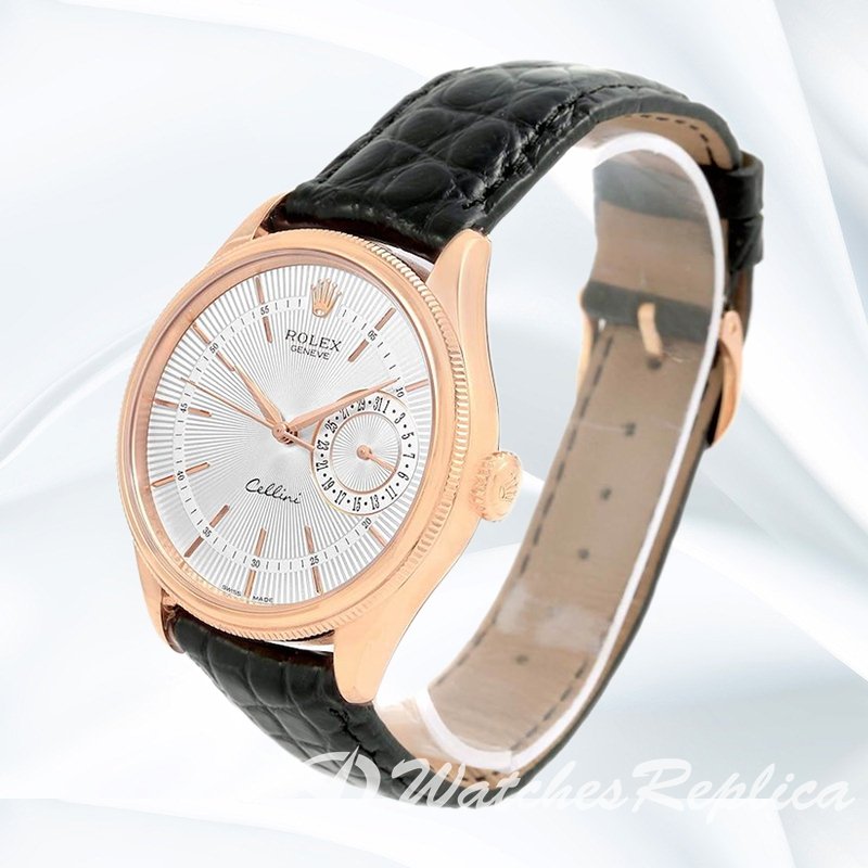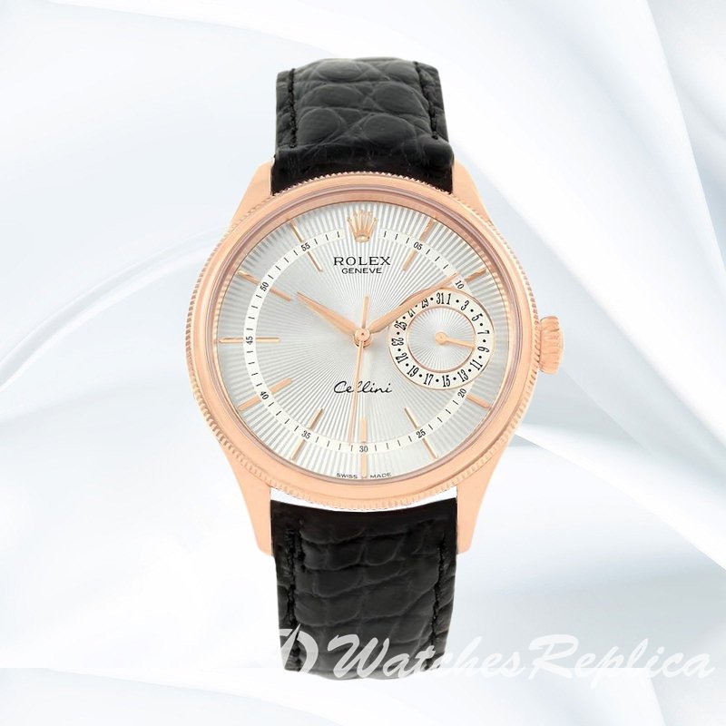 Rolex Cellini m50515 0009 39mm Men’s Rose Gold tone Leather Strap