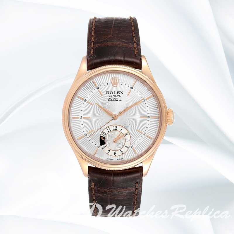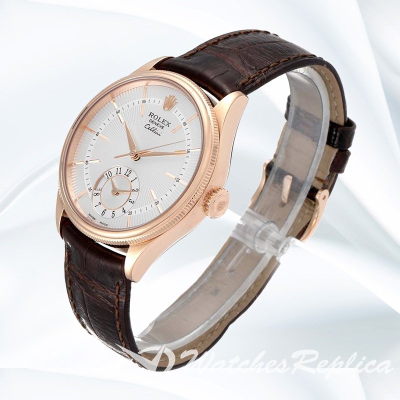 Rolex Cellini m50525 0008 Men’s 39mm Rose Gold tone Leather Strap