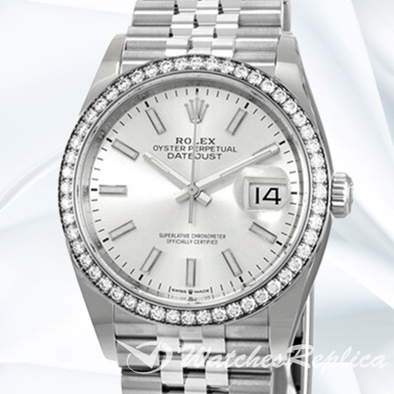 Rolex Datejust Ladies 36mm m126284rbr 0005 Diamond Bezel Silver Dial